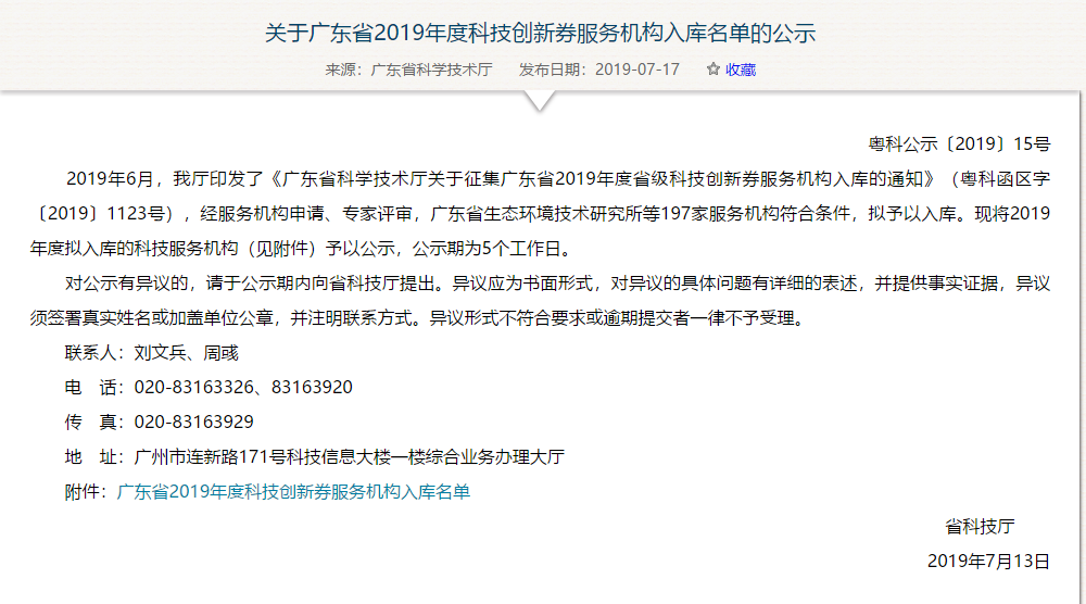 廣東省2019年度197家科技創(chuàng)新服務(wù)券服務(wù)機構(gòu)入庫名單下載:
